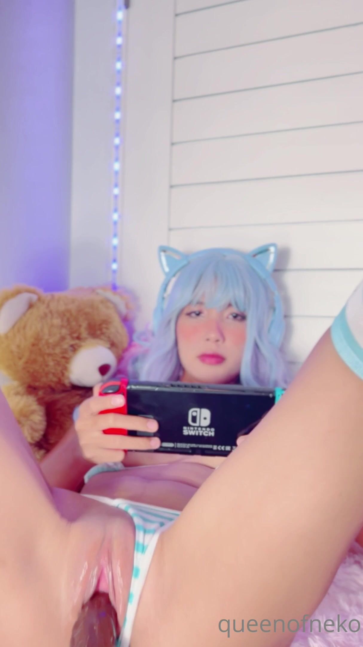 Queenofneko Cosplay Babe Wearing Buttplug Before Fucking Her Pussy With Dildo Onlyfans Video