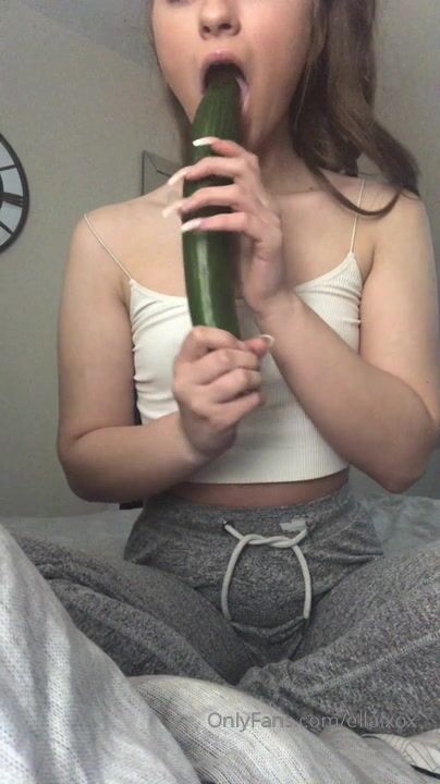 Ellalxox Sucking Huge Cucumber And Puts It Inside Shaved Pussy Till Orgasm Onlyfans Video