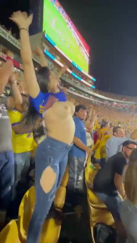 Watch Spanish Babe Lifts Up Her Top And Shake Big Boobs In Public Football Game Viral Video Seen on ViralPornHub.