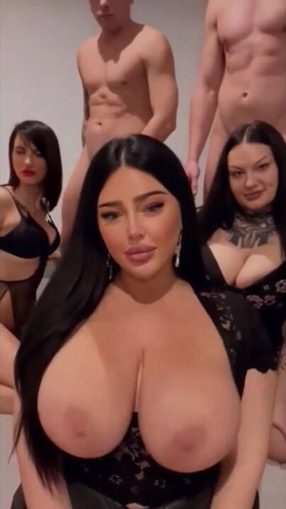 Brunette Beauty Let a Friends Licking Her Nipples While Giving Blowjobs Video