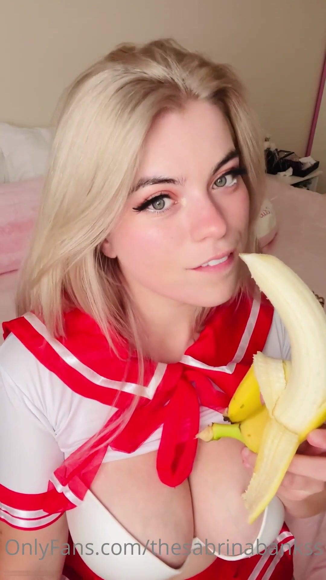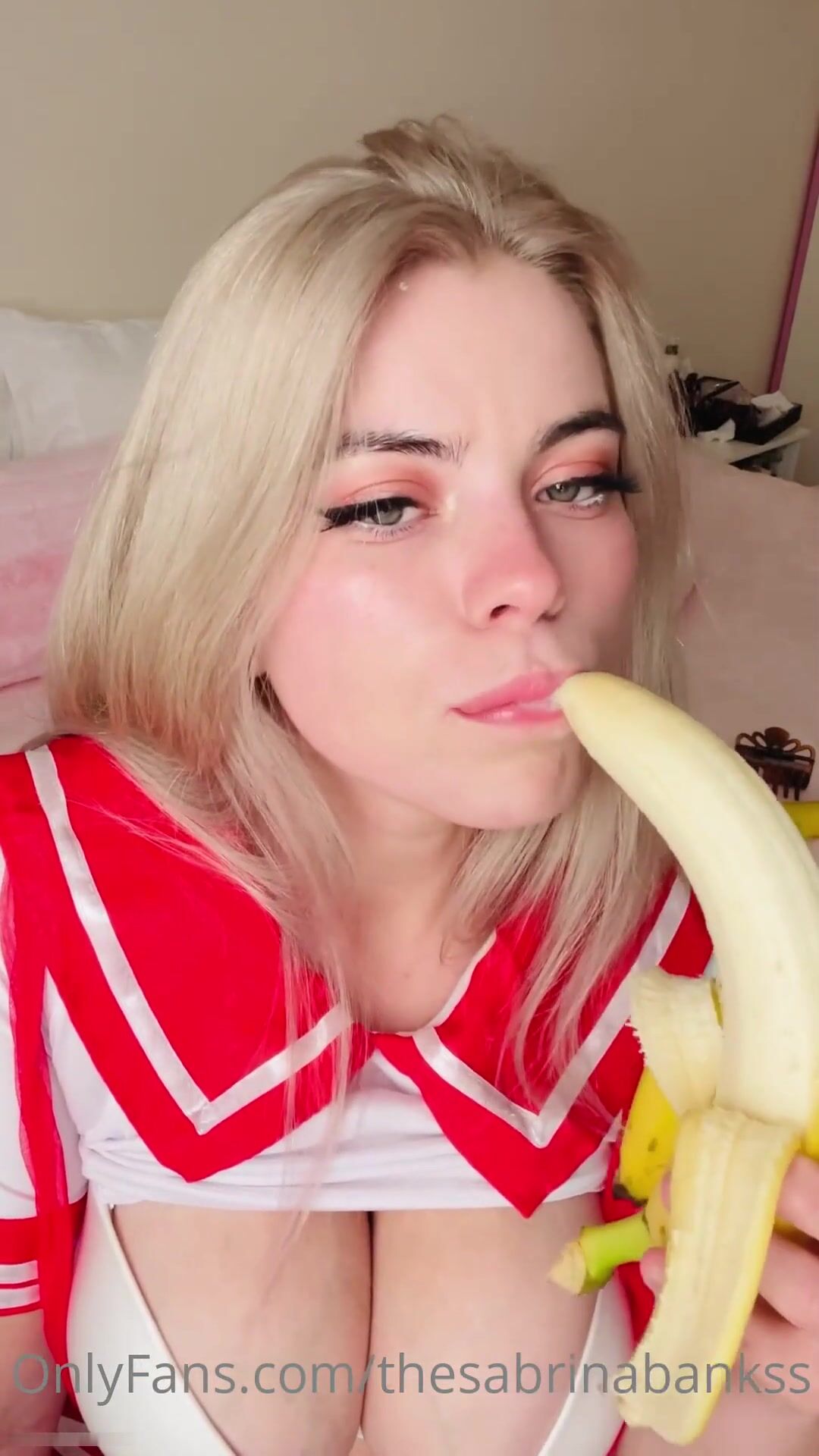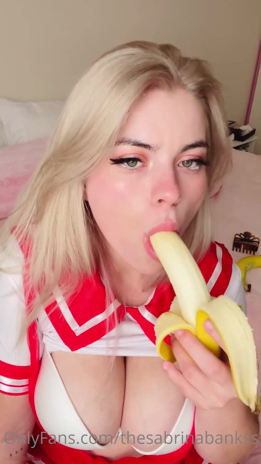 Watch thesabrinabanks Big Titty Babe Deeply Sucking a Banana in College Cosplay Onlyfans VIdeo Seen on ViralPornhub