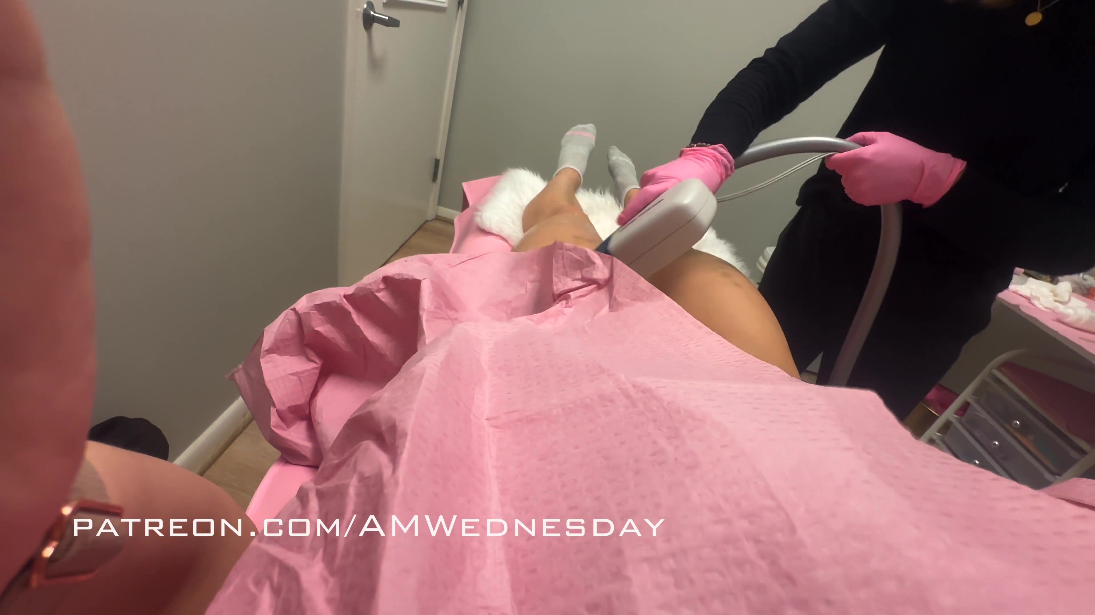 AmWednesday getting her pussy treated by laser making cunt wet by the machine.