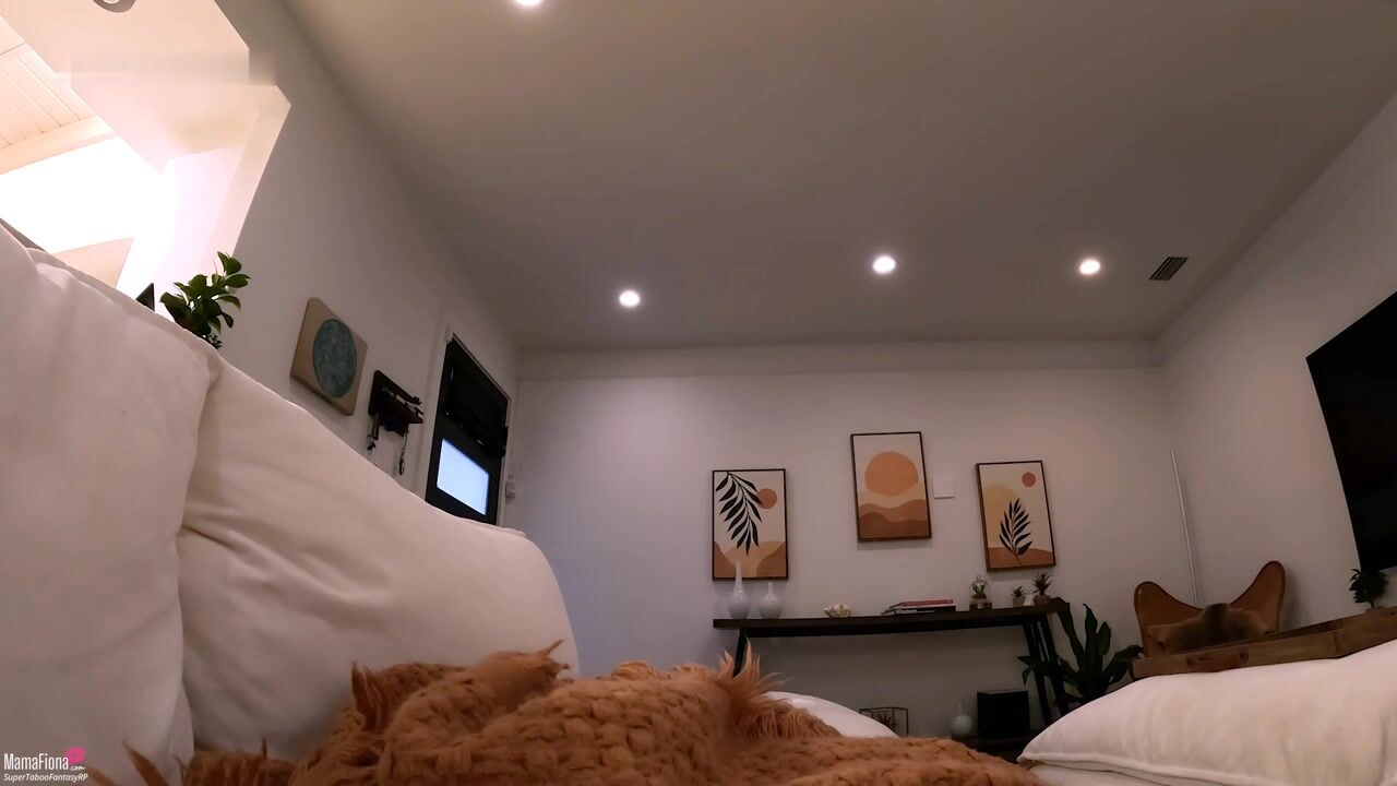 A brunette babe Mama Fiona slowly teasing her pussy and big tits in a cozy bedroom video, making it steamy with a dildo in her hand and a naughty glint in her eye.