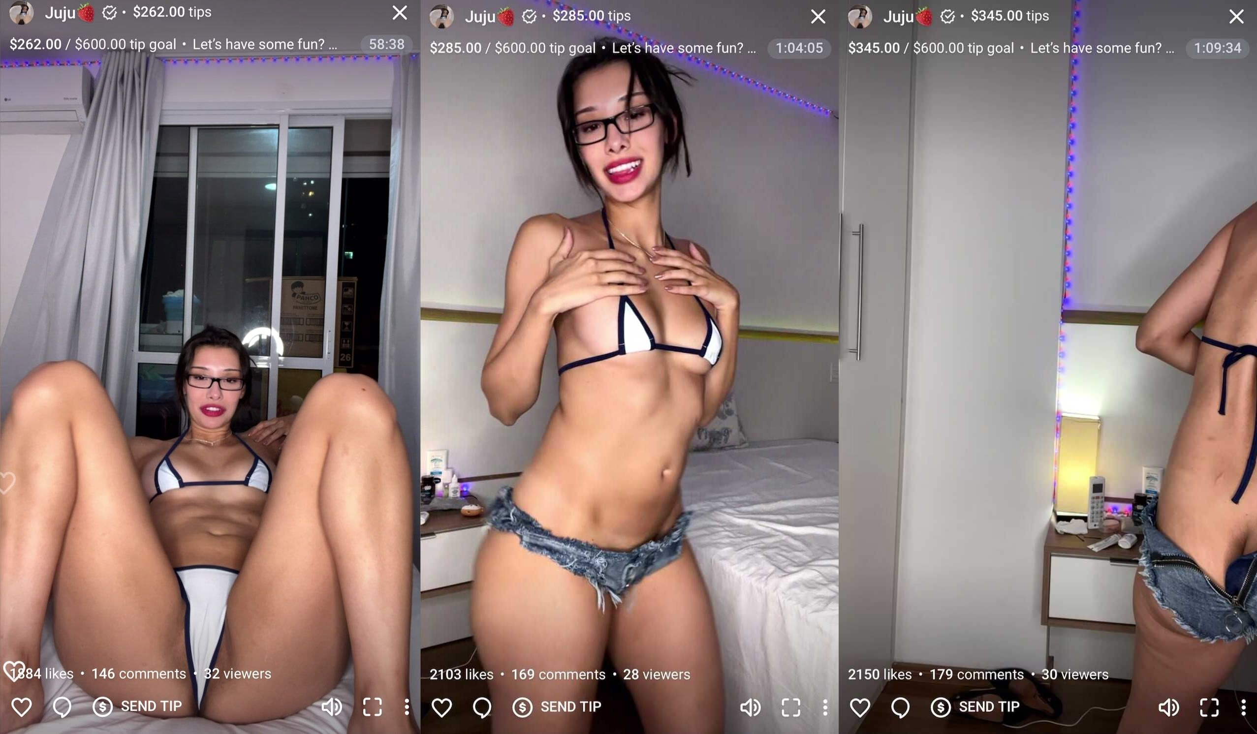 Asian babe Juju heats up her live stream with a bikini tease and plenty of curves on display in this 14-minute video.