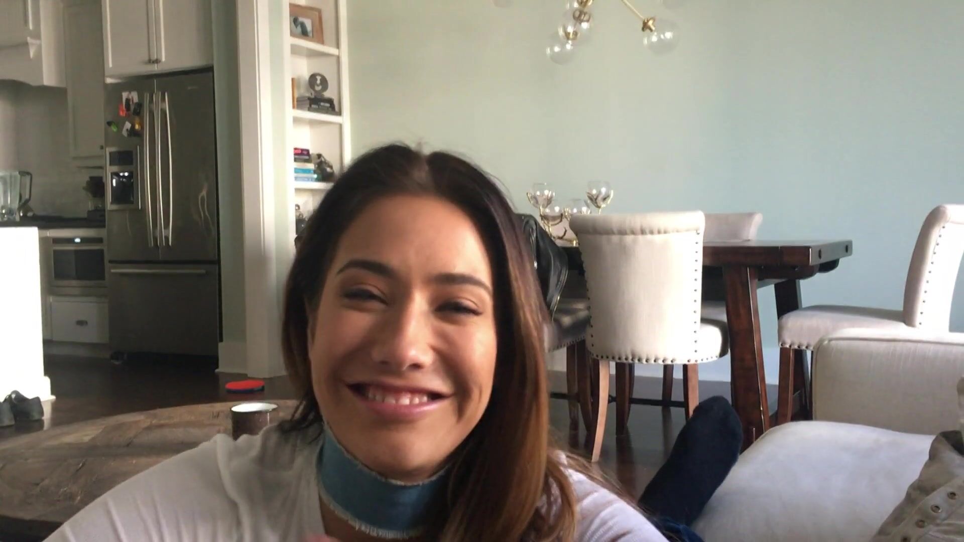 Eva Lovia gives a naughty handjob and blowjob in this steamy kitchen video watching at you while she sucks.