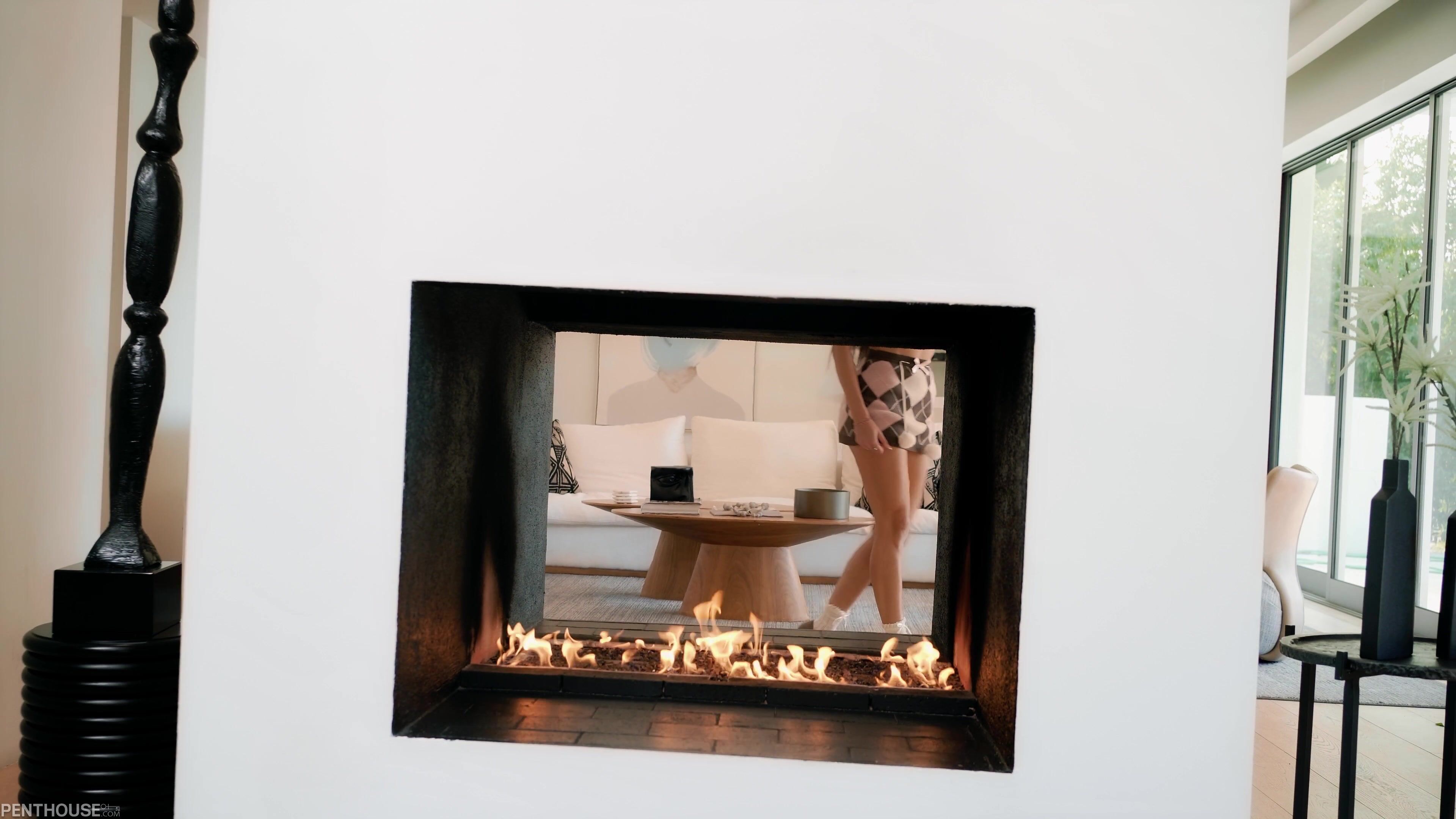 Izzy Green PenthouseGold Petite Cutie Strips and Teases in Black Lingerie and Mini Skirt in Luxury Setting