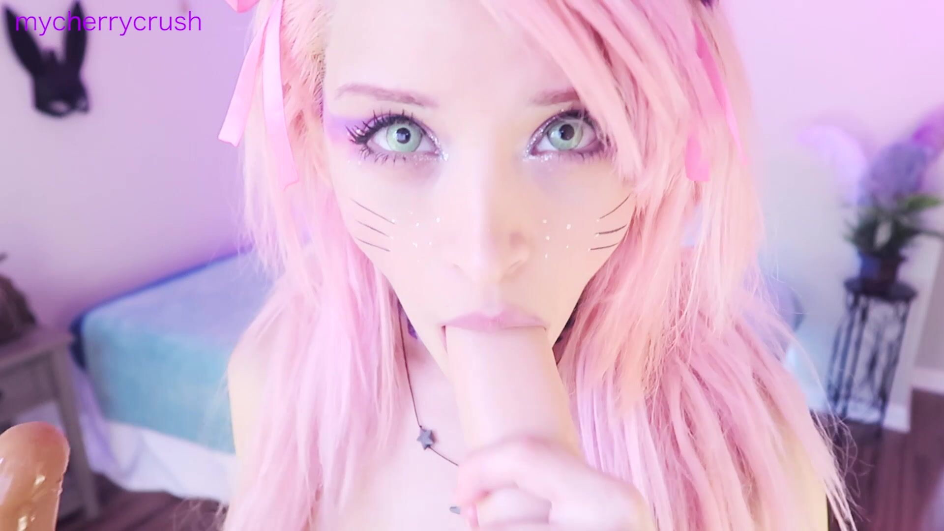 Pink-haired beauty MyCherryCrush play in cosplay lingerie while masturbating with her favorite dildo in this seductive video.