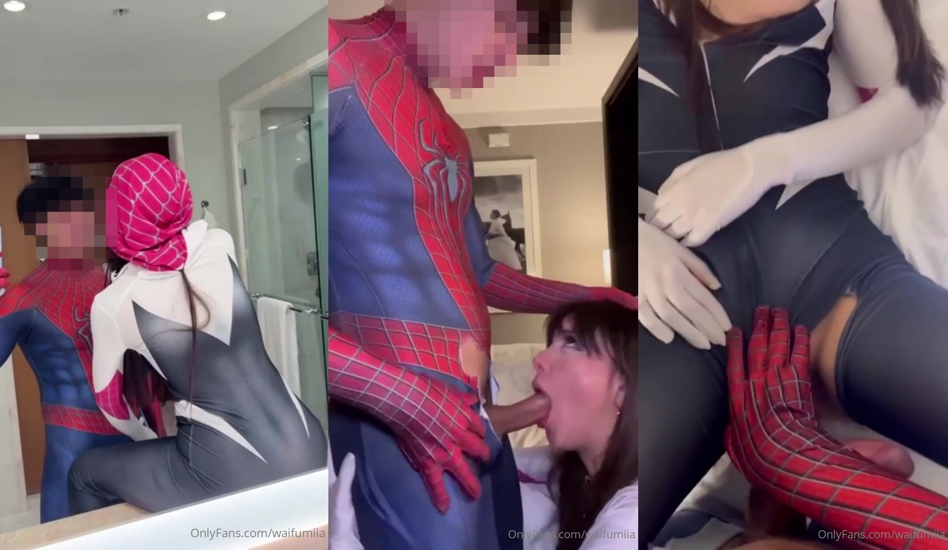 Petite spider-man cosplayer waifumiia gives a sloppy blowjob and gets fucked in her tight black cat costume in this steamy roleplay video from OnlyFans.