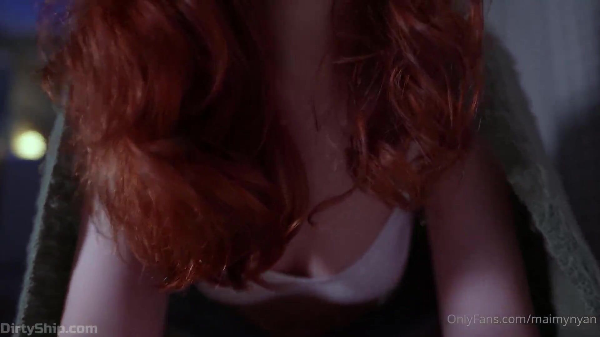 Curvy redhead Maimy ASMR strips down to lingerie in this moody ASMR video, perfect for a rainy day tease.