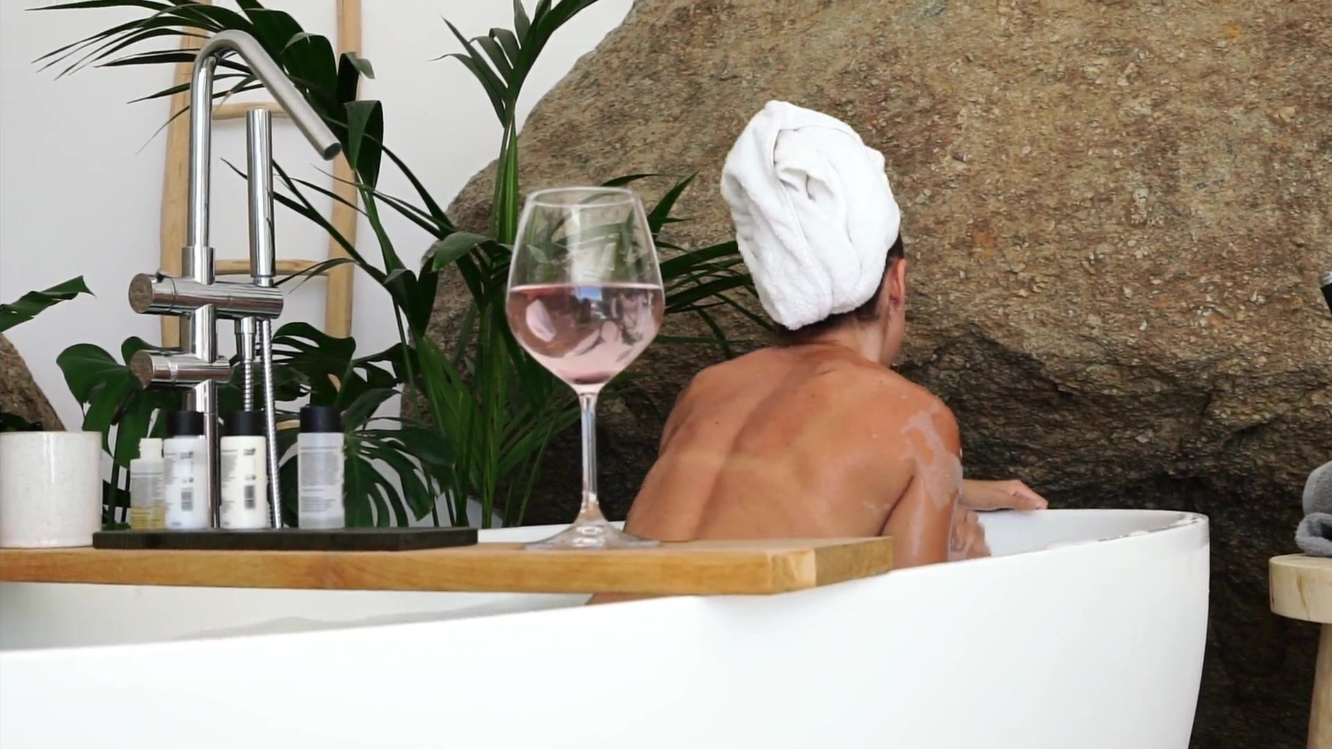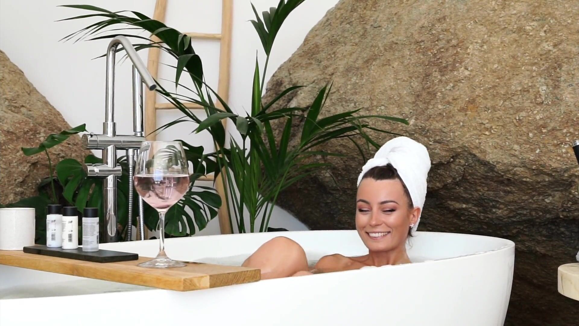 Anna Zapala naked in soapy bathtub teasing with wine glass in PPV video