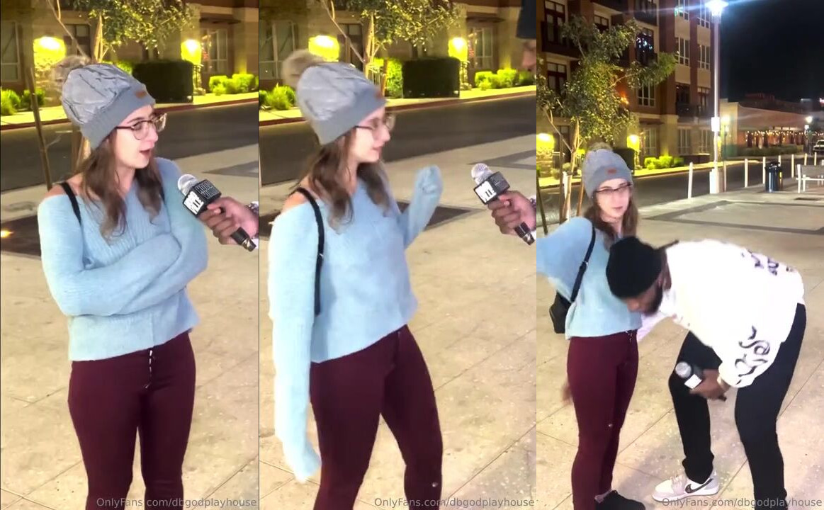 Petite Cutie dbgodplayhouse Interviews a Stranger in Public While Holding a Microphone video Fun Public Interview with Petite Haze holding a microphone in a cozy outfit for a random stranger