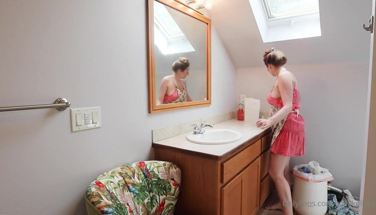 Curvy Goddess RoseKellyPPV in red lingerie teases while cleaning in this steamy OnlyFans video.