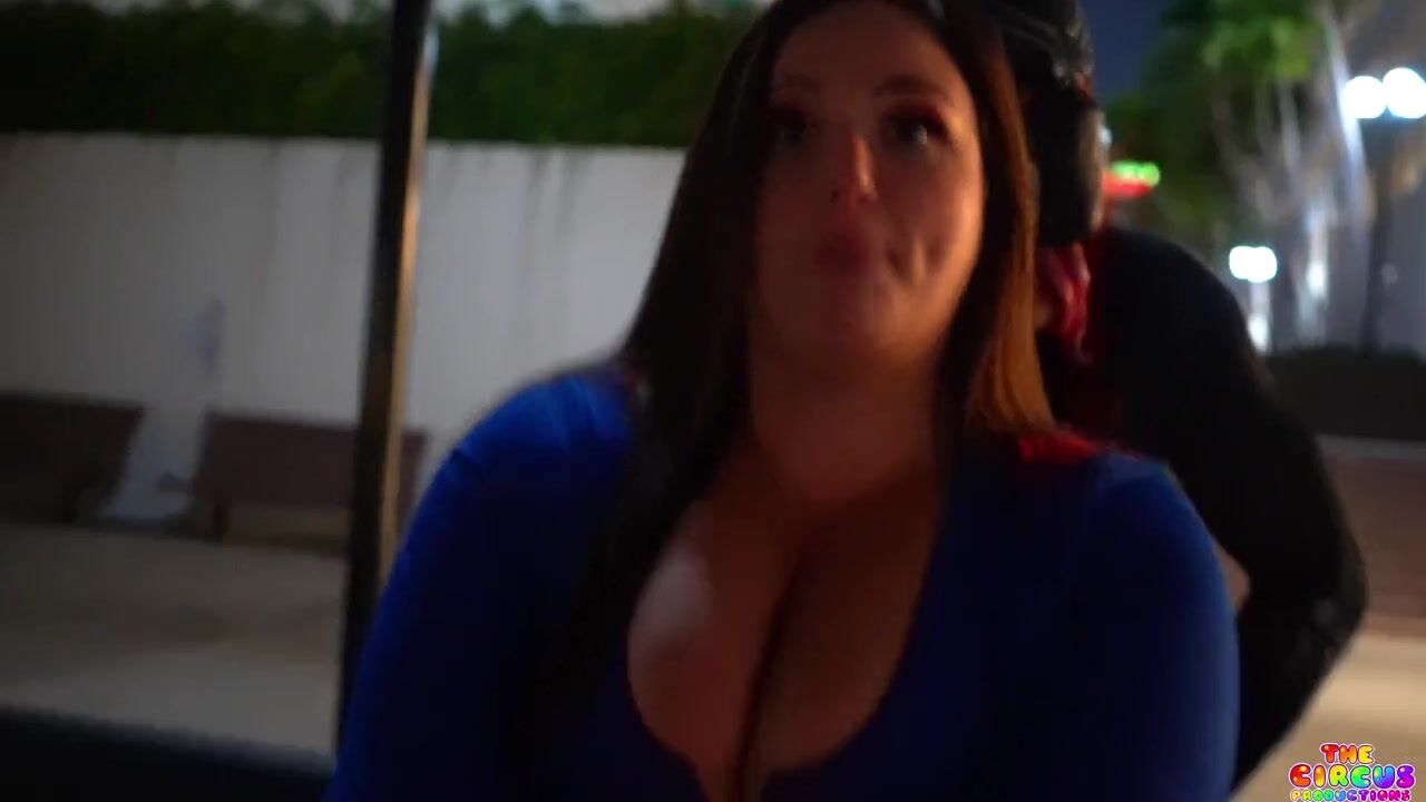 Curvy Supergirl Gibby Panther teases in a Supergirl costume as her boobs get groped in a parking garage.