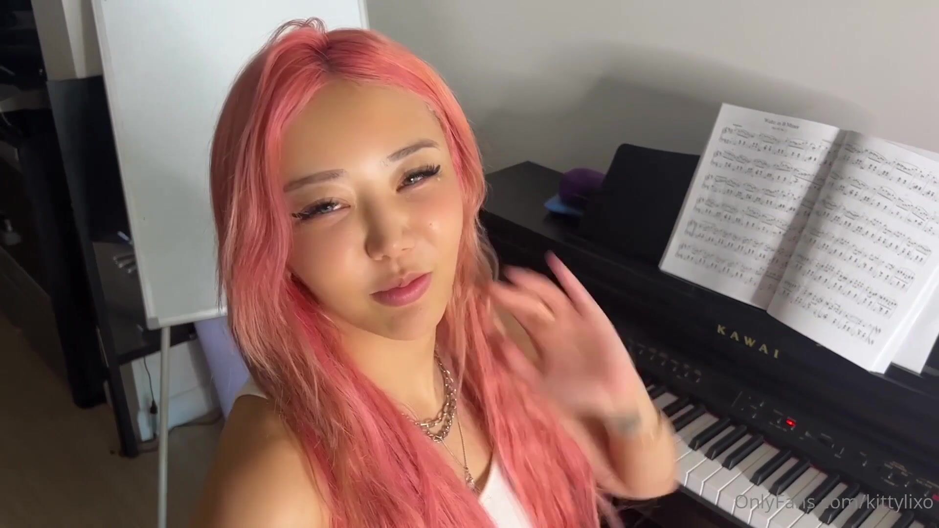 Kittylixo spreads wide to Tease her tight Asian pussy in steamy solo fuck video