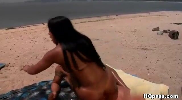 Morena Herrera gets her tight pussy pounded in a risky public beach fuck video, moaning like a dirty slut while teasing her firm tits.