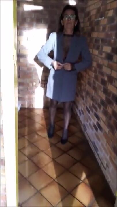 A horny mature French woman walks half nude outside
