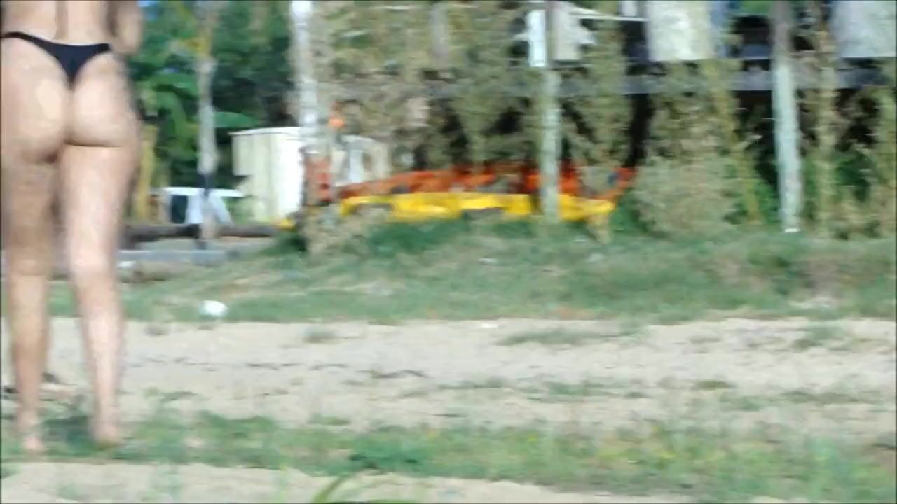 Woman with an hot fat ass wearing a thong is filmed on the beach