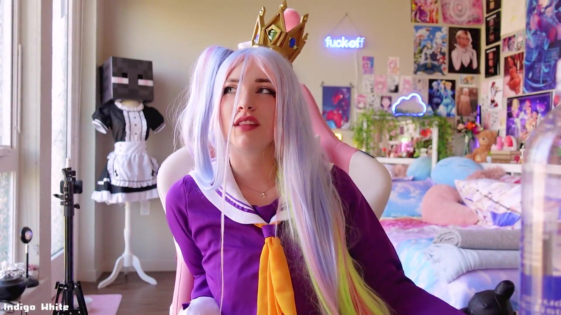 Indigo White - Cosplay Hottie Sucking Dildo And Butt Plug