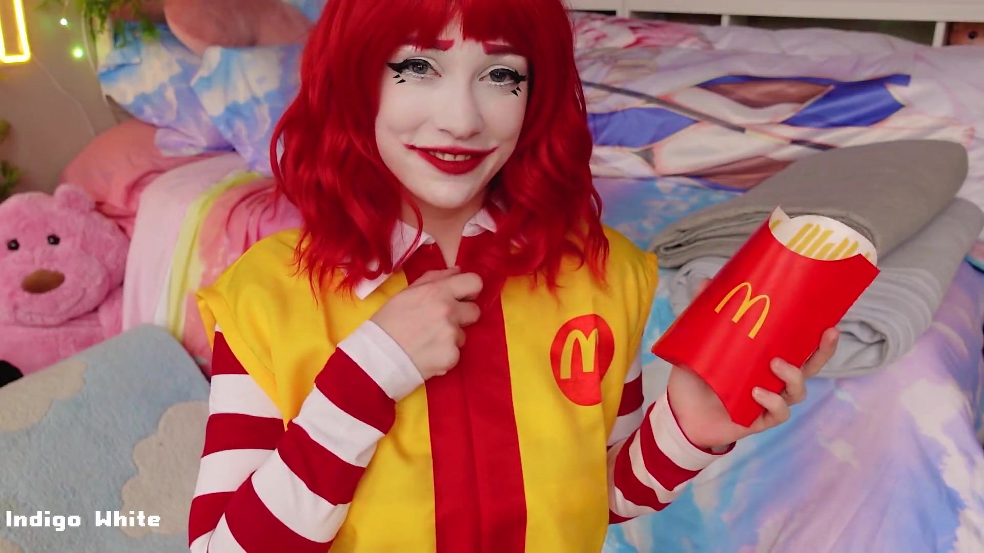 Watch Indigo White Lusty Chick Showing Off Her Tits and Her Pussy in Mcdonald Parody Video Seen on ViralPornhub